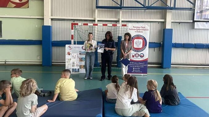 Wakacje to czas odpoczynku i beztroski, jednak nie zwalniają one z konieczności dbania o bezpieczeństwo. Dzieci, które nie wyjechały z rodziną, często uczestniczą w lokalnych półkoloniach. Mając na względzie dobro najmłodszych mieszkańców powiatu, zwoleńscy policjanci i pracownicy sanepidu odwiedzili jedną z grup półkolonijnych, by przypomnieć uczestnikom najważniejsze zasady, które pozwalają uniknąć zagrożeń w czasie wakacyjnych aktywności.