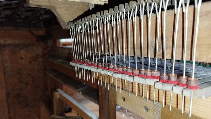 Obecnie montowany jest mechanizm uruchamiający grę instrumentu. Do tej pory zamontowano nowe filce, abstrakty, klawiaturę górną i nożną, popychacze oraz pokrętła regulujące. Zostały również wyłożone nowe filce i uszczelnienia oraz zamontowany kanał doprowadzający powietrze do registrów.