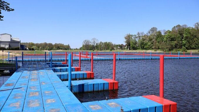 Na terenie akwenu znajduje się pomost wykonany z kostki polietylenowej, o prostokątnym kształcie, z dwoma wydzielonymi strefami kąpielowymi: dla dorosłych i dla dzieci.