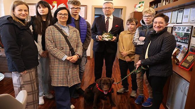 Uczniowie Specjalnego Ośrodka Szkolno-Wychowawczego w Hucie odwiedzili Urząd Miejski w Zwoleniu, składając wielkanocne życzenia burmistrzowi Zwolenia.