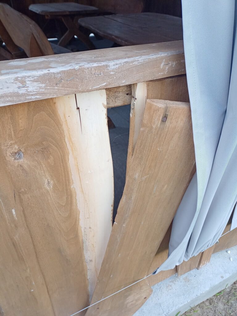 Zniszczona altanka na placu wiejskim w Przyłęku – wpis na lokalnej grupie wywołuje oburzenie.